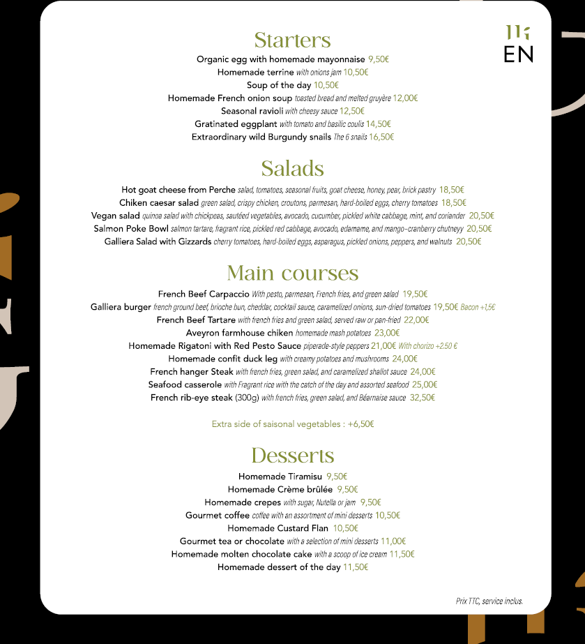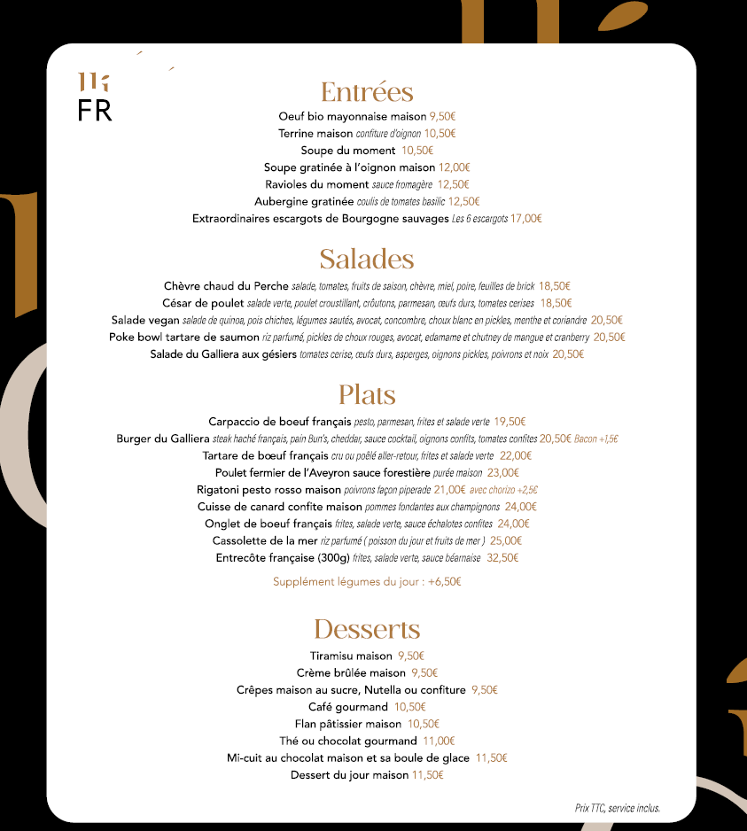 CALL +330147208206Le Restaurant Galliera, situé en face du Palais Galliera, musée de la mode, propose une expérience gastronomique raffinée dans un cadre intime et chaleureux. Ce restaurant familial propose une cuisine bistronomique revisitant des classiques, comme le poulet fermier de l'Aveyron façon grand-mère.